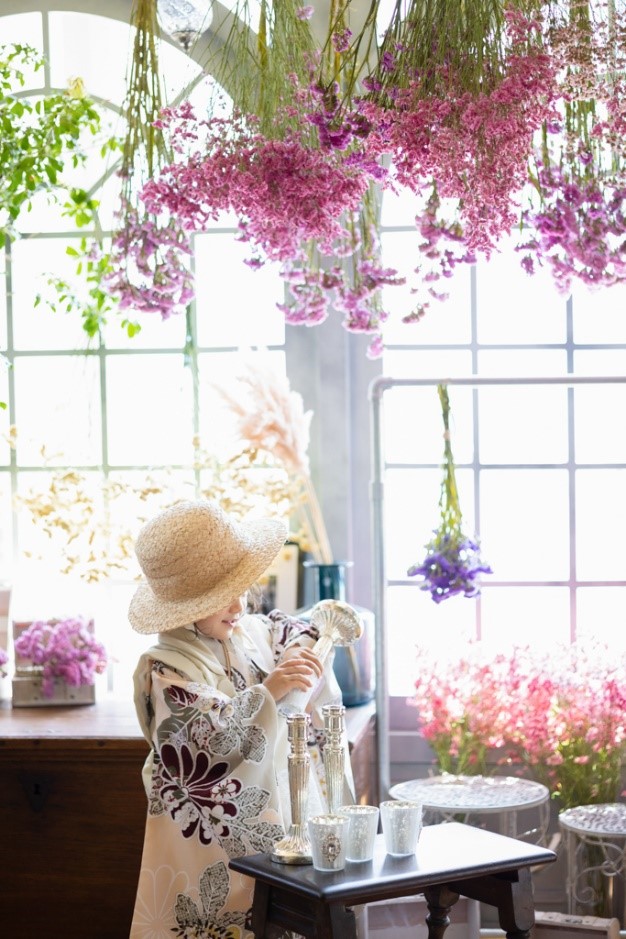 インテリアに合った衣装に、お着物はもちろん、地元京都で買付した本場の着物のご用意があります。
