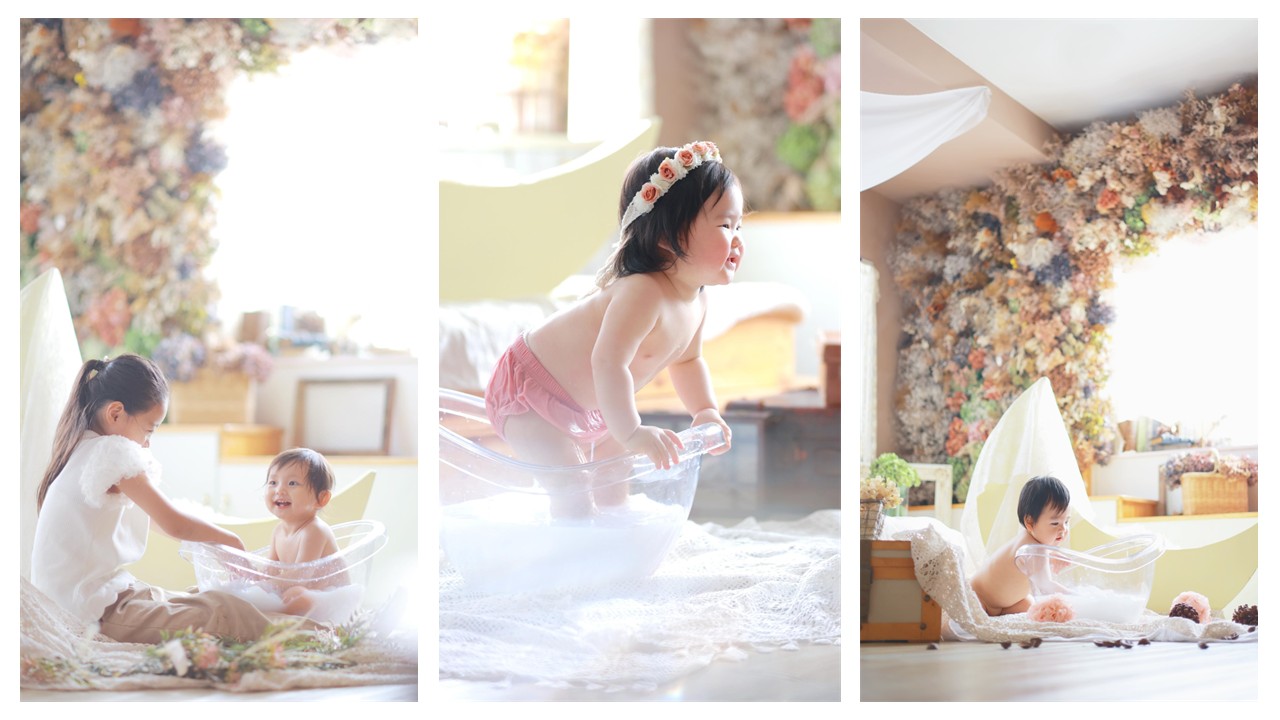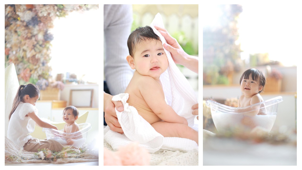 赤ちゃんの記念でとっても大人気な「ミルクバスフォト」をご用意しております。