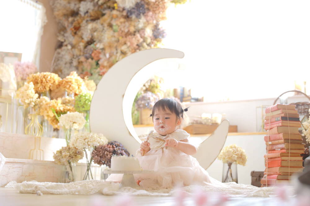 お子様の無邪気な表情や、ケーキに対する興味深い反応を、最高の形で記録に残します。