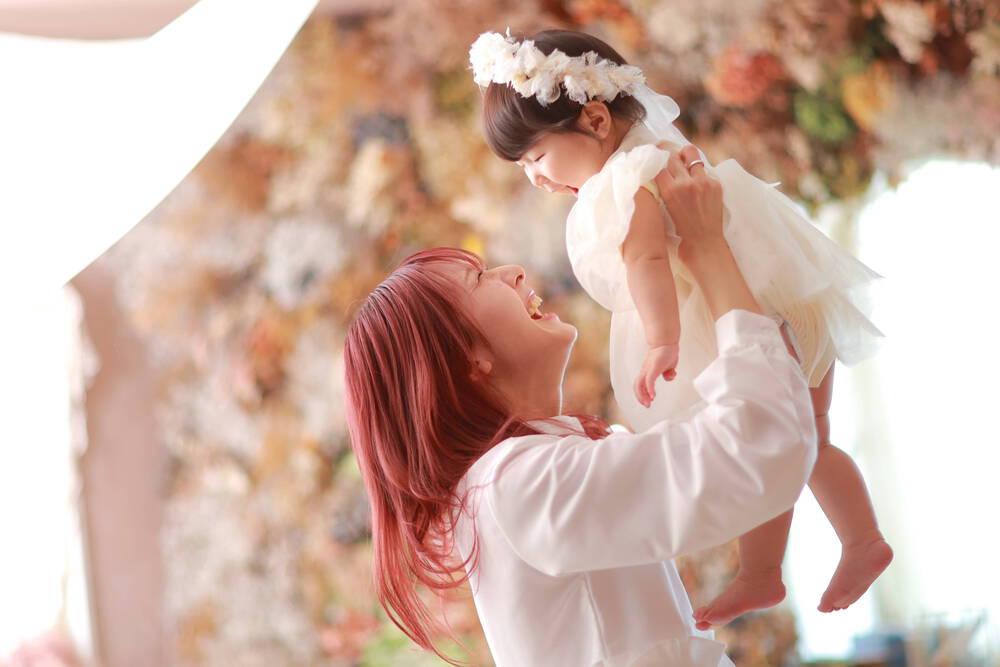 赤ちゃんの花冠やチュールの質感も相まって、ナチュラルで幻想的な雰囲気が広がります。