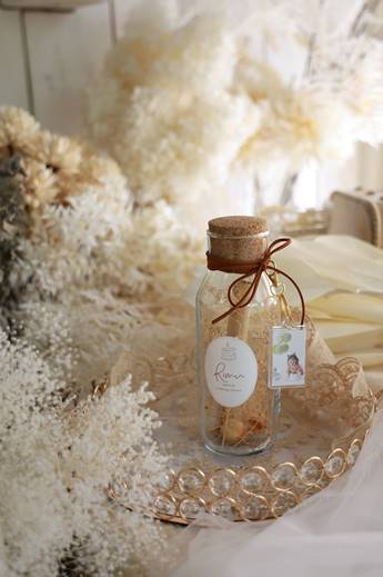 ・宝石箱となるわが子の名前入りのビン
