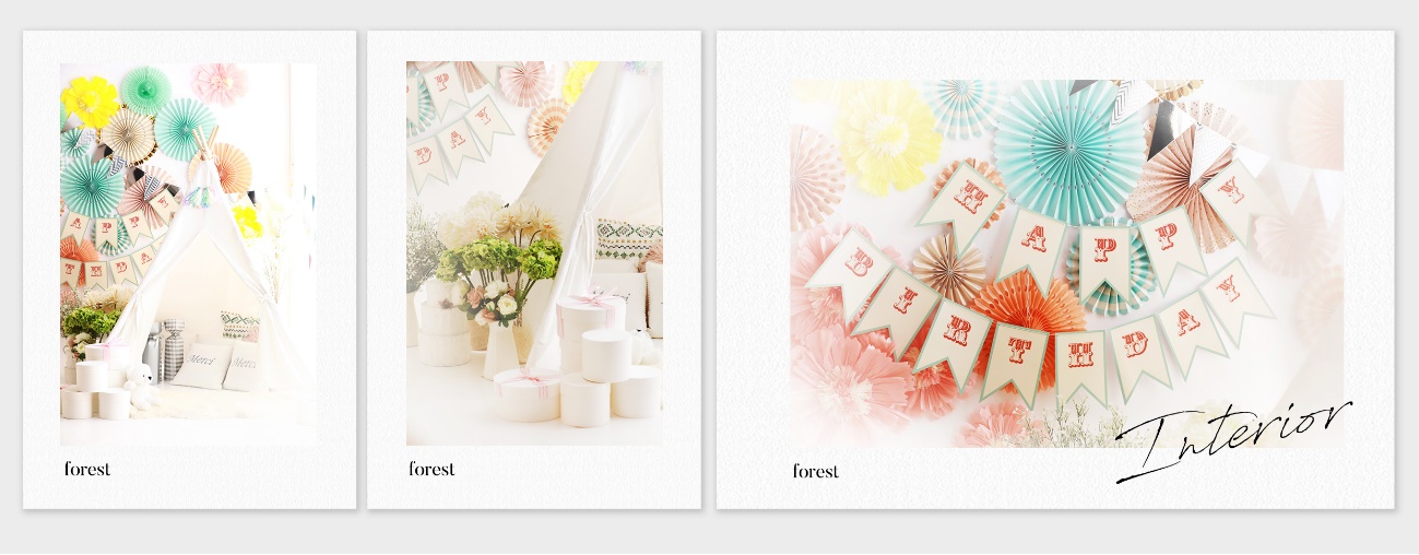 千葉フォレスト店のオリジナルバースデーブースはカラフルなガーランドやhappybirthdayのガーランドなど賑やかな飾り付けが魅力です。また、誕生日プレゼントを包装する可愛いラッピングの箱やムードを盛り上げてくれるお花など素敵な仕上がりです!!