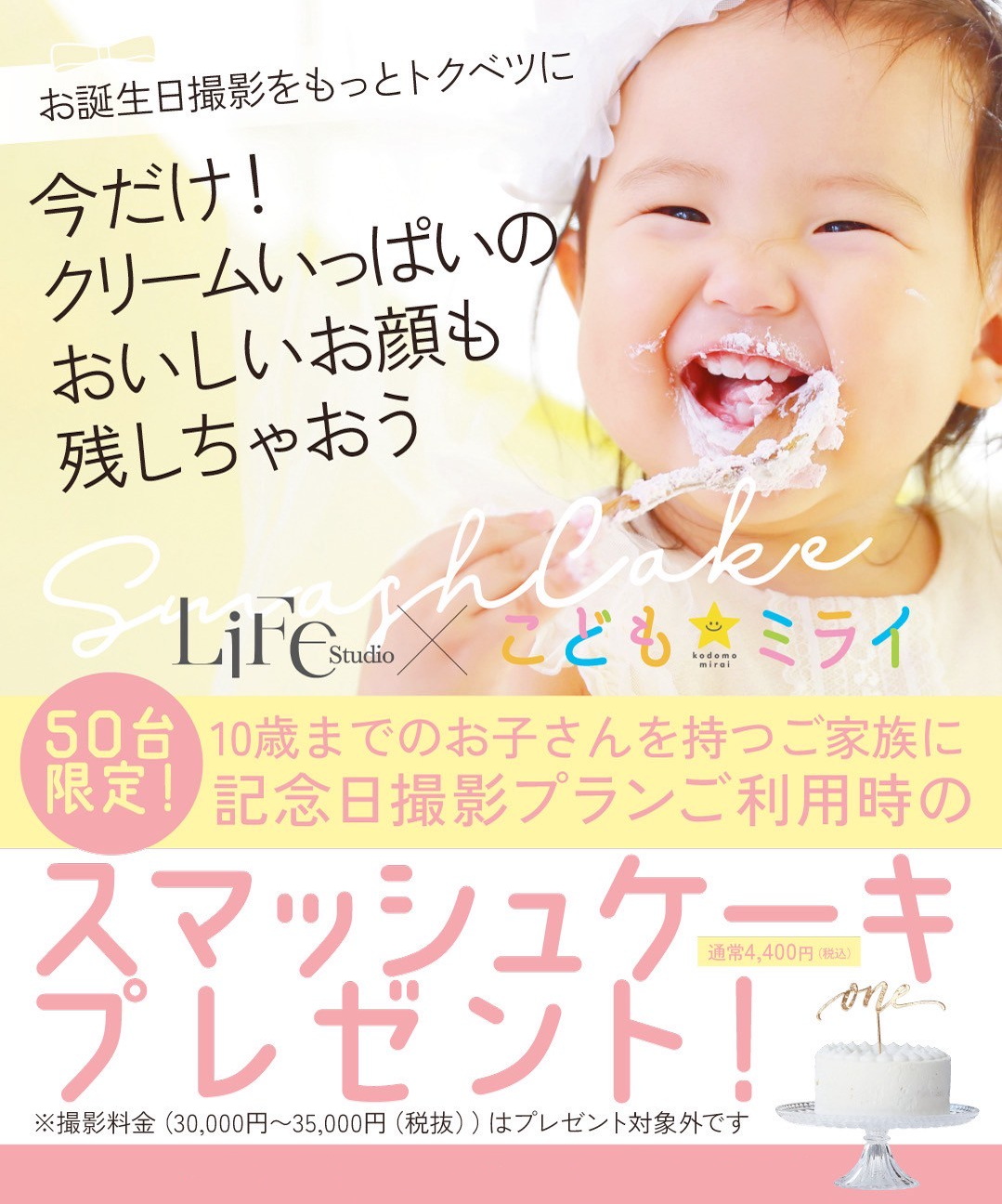 【スマッシュケーキ撮影が無料!】ライフスタジオ豊川店・浜松店×こどもミライ限定コラボ企画
