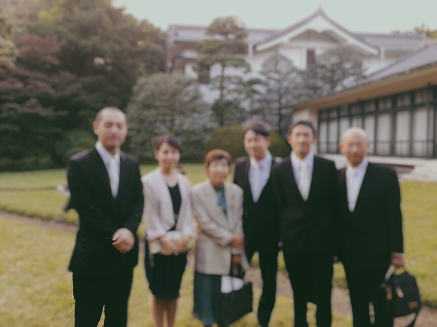 明治神宮といえば綿帽子を被った新婦と羽織の新郎に続いて歩く場面、