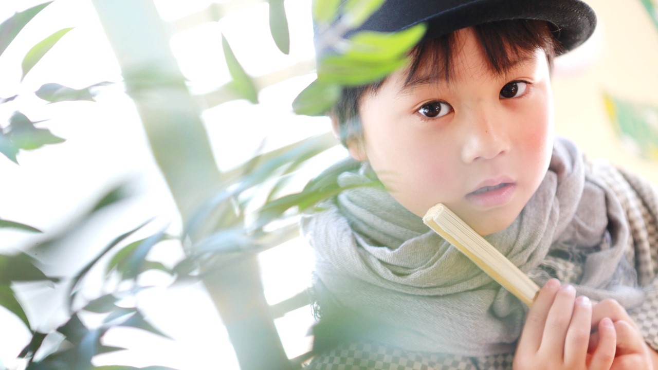 ライフスタジオ市川店には和室のご用意があります。また、着物撮影に会う和傘なども無料で貸し出していますのでぜひご利用ください。また、5歳の男の子の七五三スタイルのアレンジとしてハットやストールを巻いて大正ロマン風の雰囲気で撮影させて頂く場合もあります。ぜひ、いろいろなバリエーションで楽しんでください。