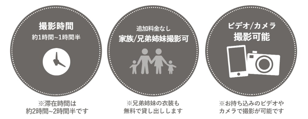 (※3人お着物を着られる場合はお着物のみの撮影となりますので、ご了承ください。)