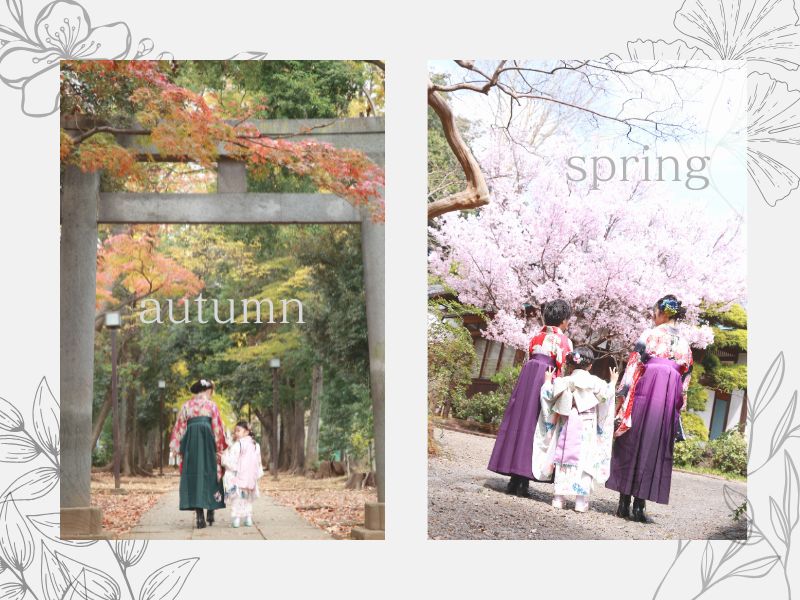 春には桜、秋には紅葉と、季節ごとに異なる背景が楽しめ、スタジオでは味わえない自然な表情を引き出すことができます。