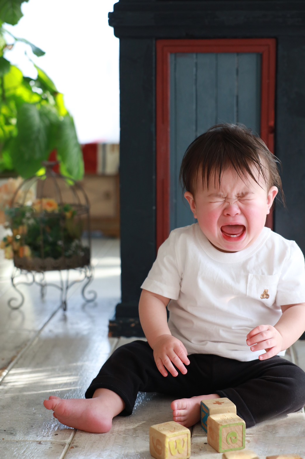1人の撮影になるとおもちゃで遊びながらも、