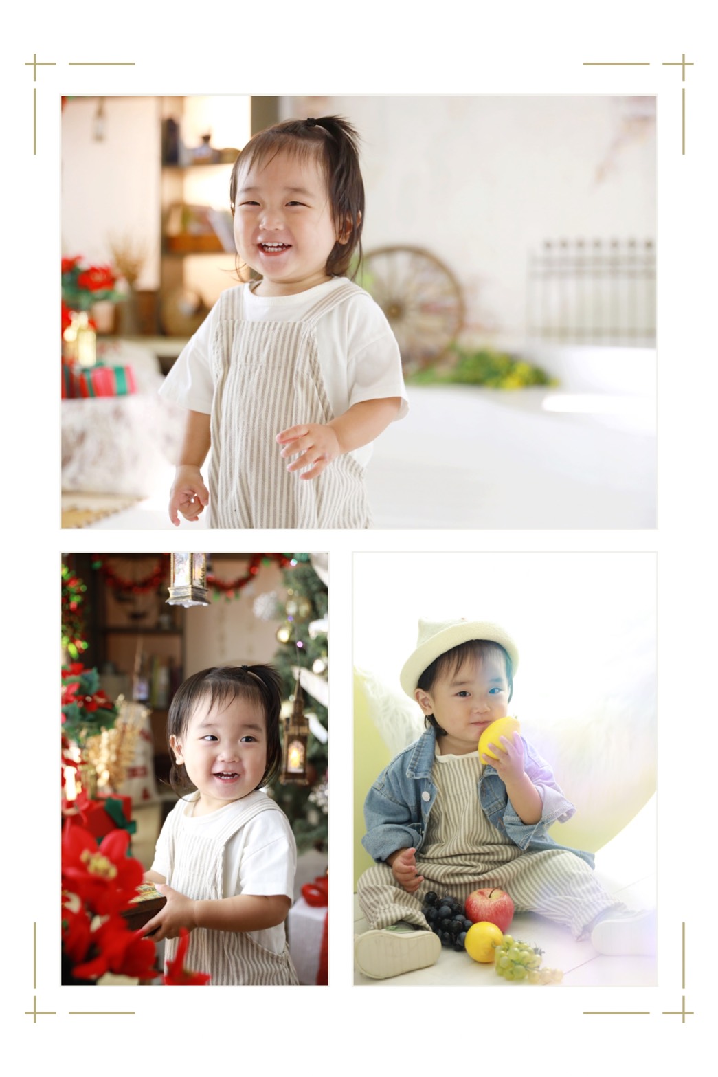 クリスマスツリーや果物のおもちゃと一緒に撮影しました。