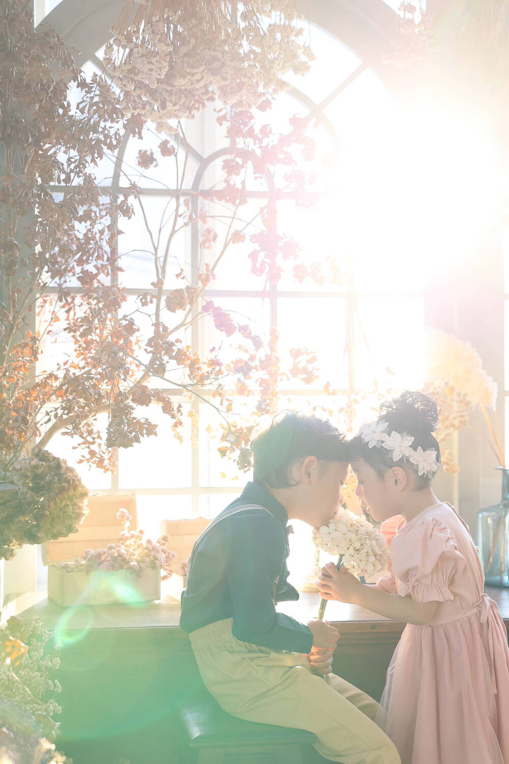 2人の可愛らしいやりとりや動きを見ながら、逆光によって発生するフレアが写真のアクセントになるように1ミリ・2ミリとカメラの位置を微調整して動きながら撮影をしました。