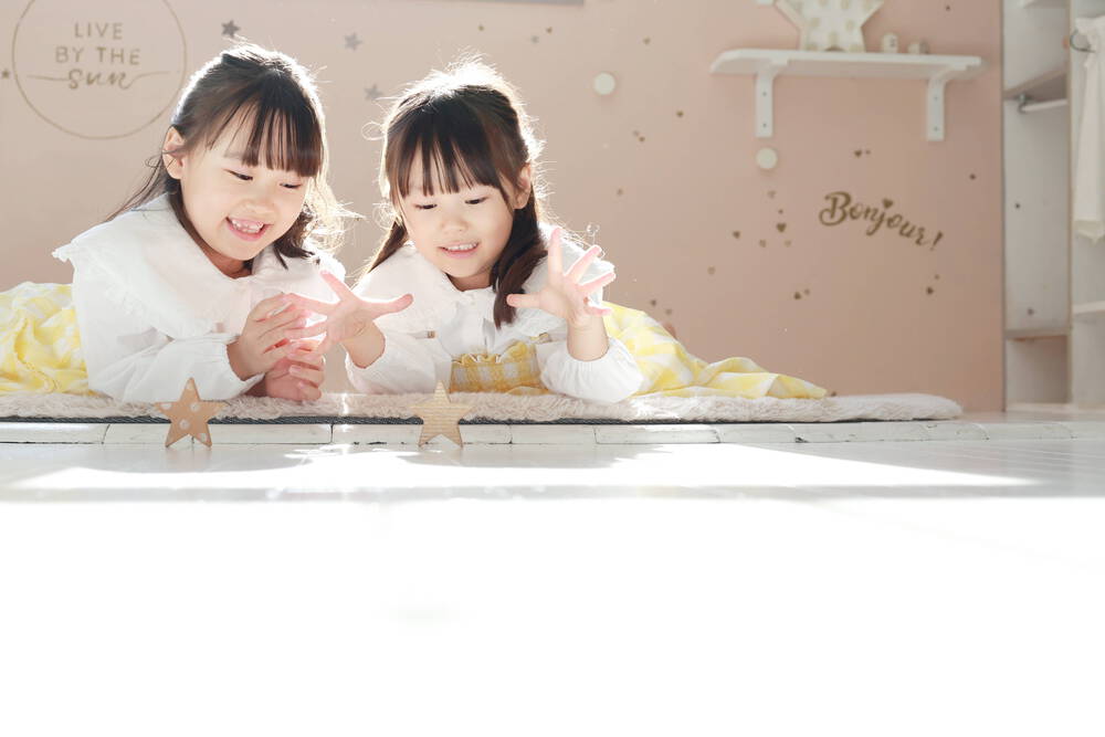 小さな手が星の積み木をつまみ、そっと置かれる。