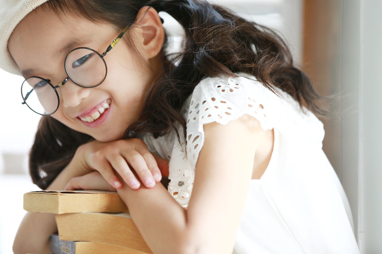 ベンチに座ってもらい、本を数冊ひざの上に乗せ、腕を乗せ、さらに顔を重ねました。