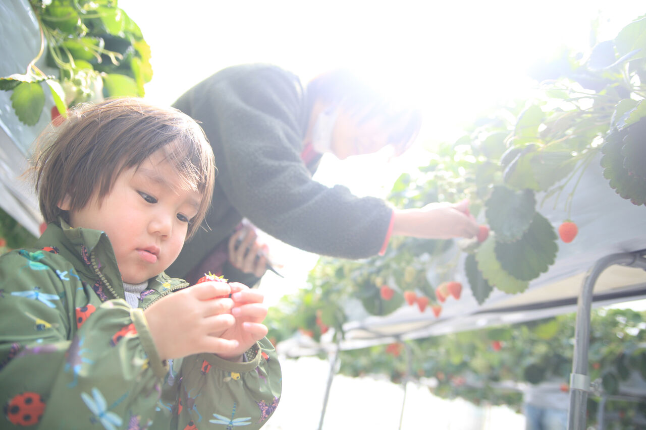 家族みんながはじめてのいちご狩りへ行くことになりました。