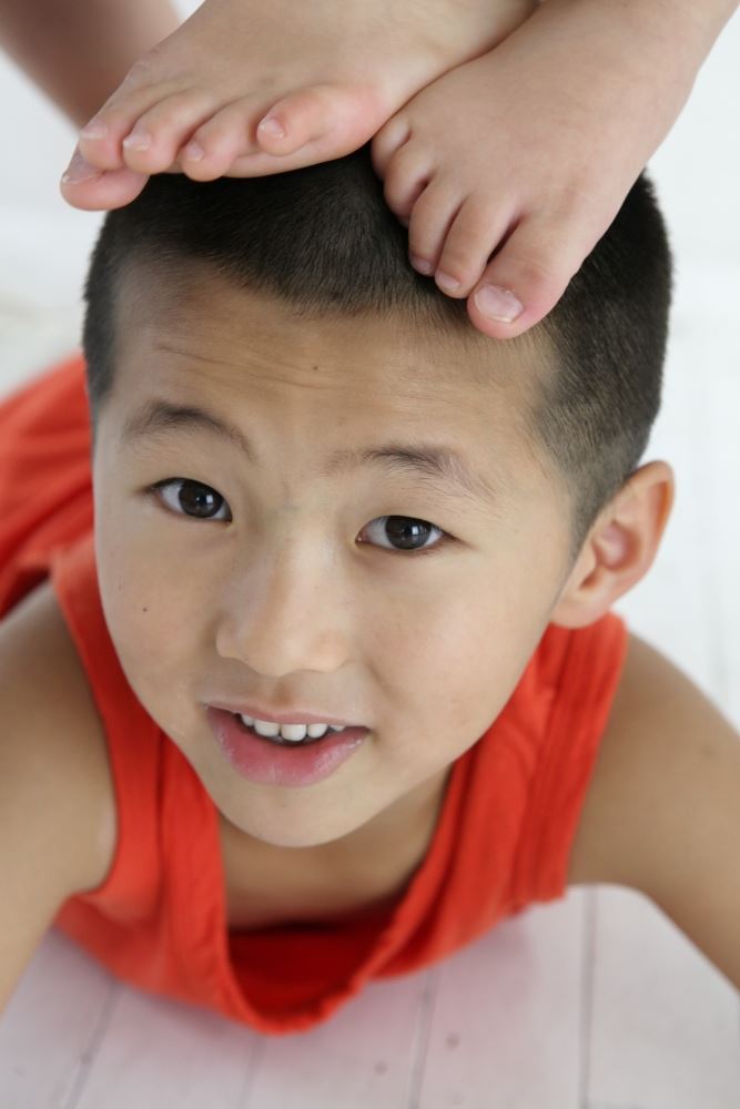 三人並んで座っていた椅子から、ひょうきん者の長男の兄が飛び降りて、イスの下に寝そべりだし、弟二人はその兄の頭を踏んづけはじめた。一方兄は何てことない顔で、私のカメラにキメ顔をくれた。こうして写真としては何とも説明しがたいシュールな画が出来上がった。そして、私はこの状況に感謝し、カメラをしっかり構えて、必死に笑いを堪えながらシャッターをきった。