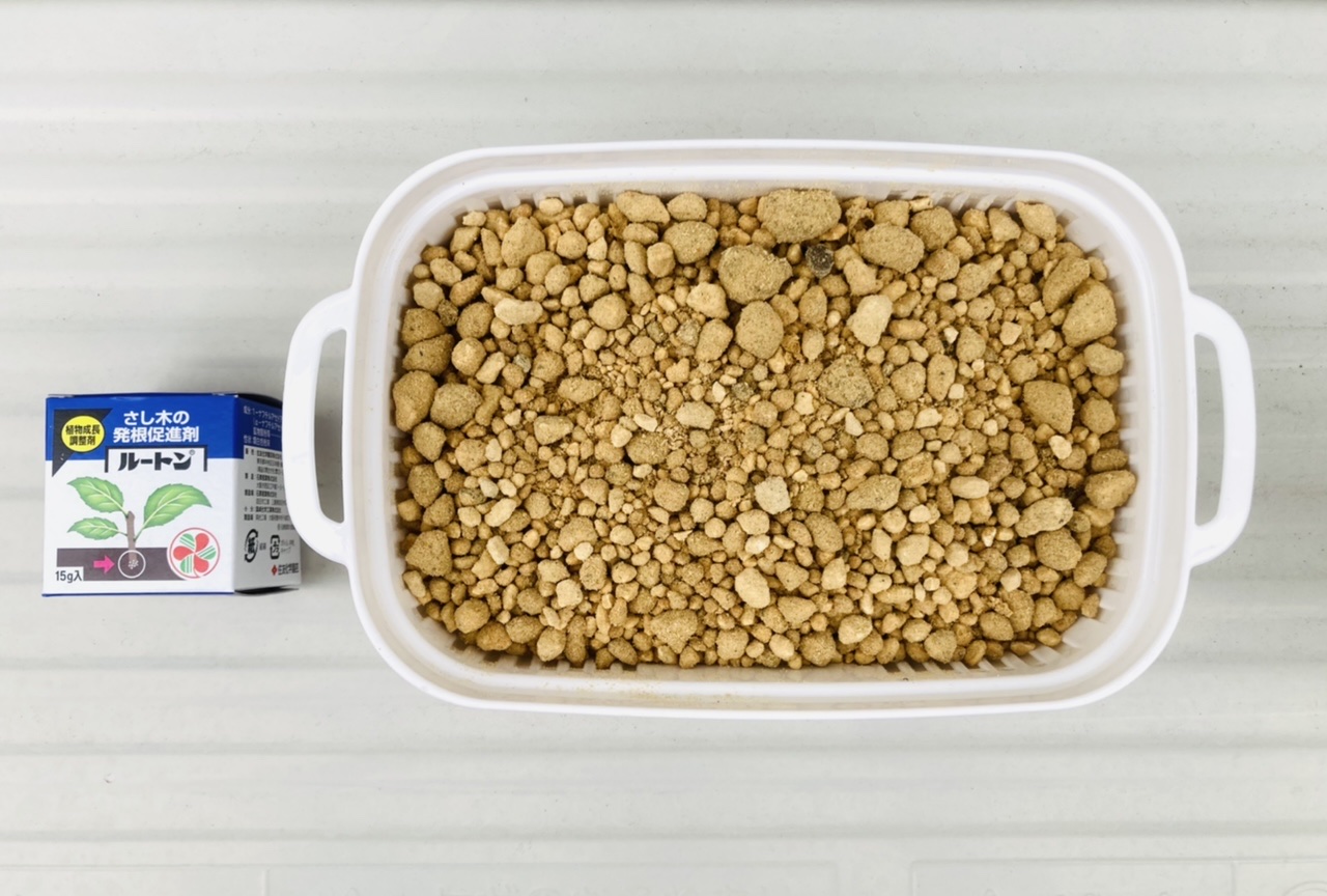 今回は鹿沼土とホルモン剤のルートンを用意。