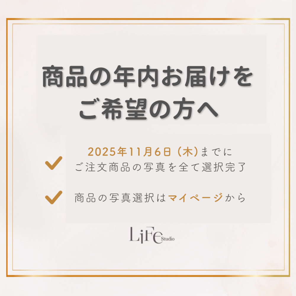 ※11月7日(金)以降 に写真選択いただいた商品は、年明け以降のお届け となります。