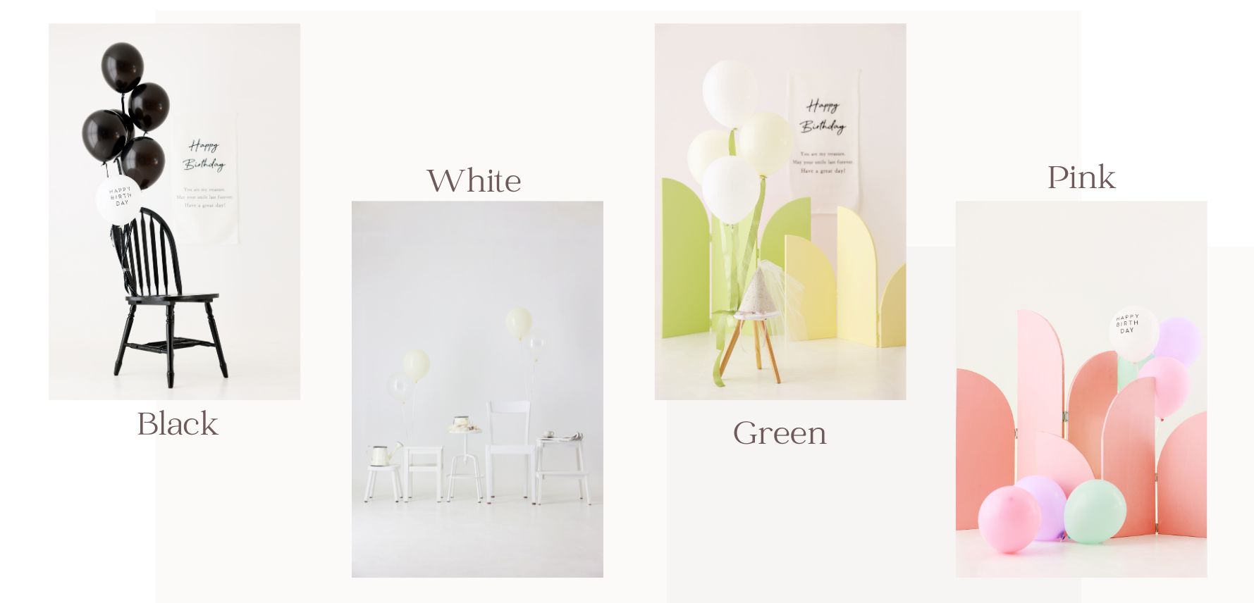 衣装や小物に統一感を持たせて撮影できる、4色のインテリアを準備してお待ちしております。お子様1人でも、おじい様おばあ様だけでも、家族みんなでも、どんなメンバー構成でも撮影可能な空間です。ケーキを使いお祝いしている写真を撮影していただけます。