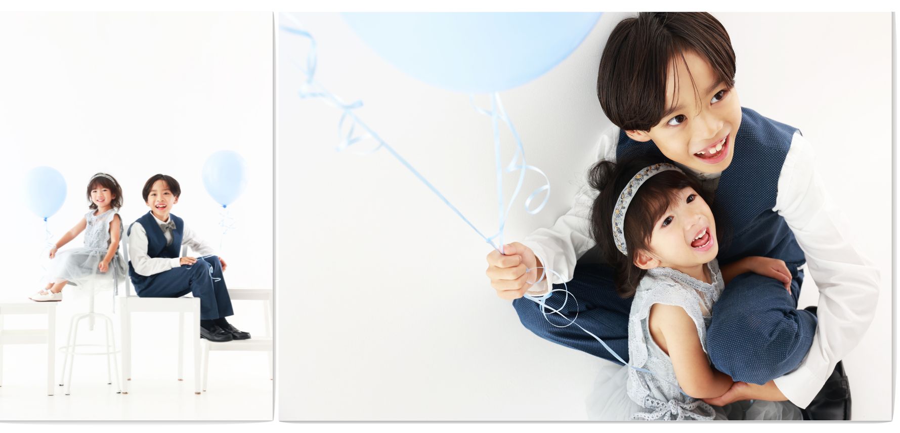 ・衣装は、着物以外のスタジオ衣装を着ていただけます。ご家族皆さま色合いを揃えてお越しいただくととても素敵に撮影できます。