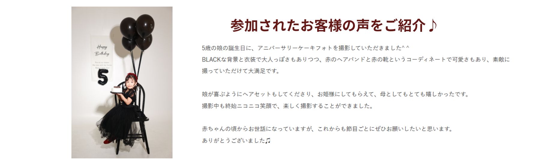 お誕生日、入学、卒業などの大きなお祝いももちろん、何気ない成長の記念まで家族だけのオリジナル空間で撮影いただけます。