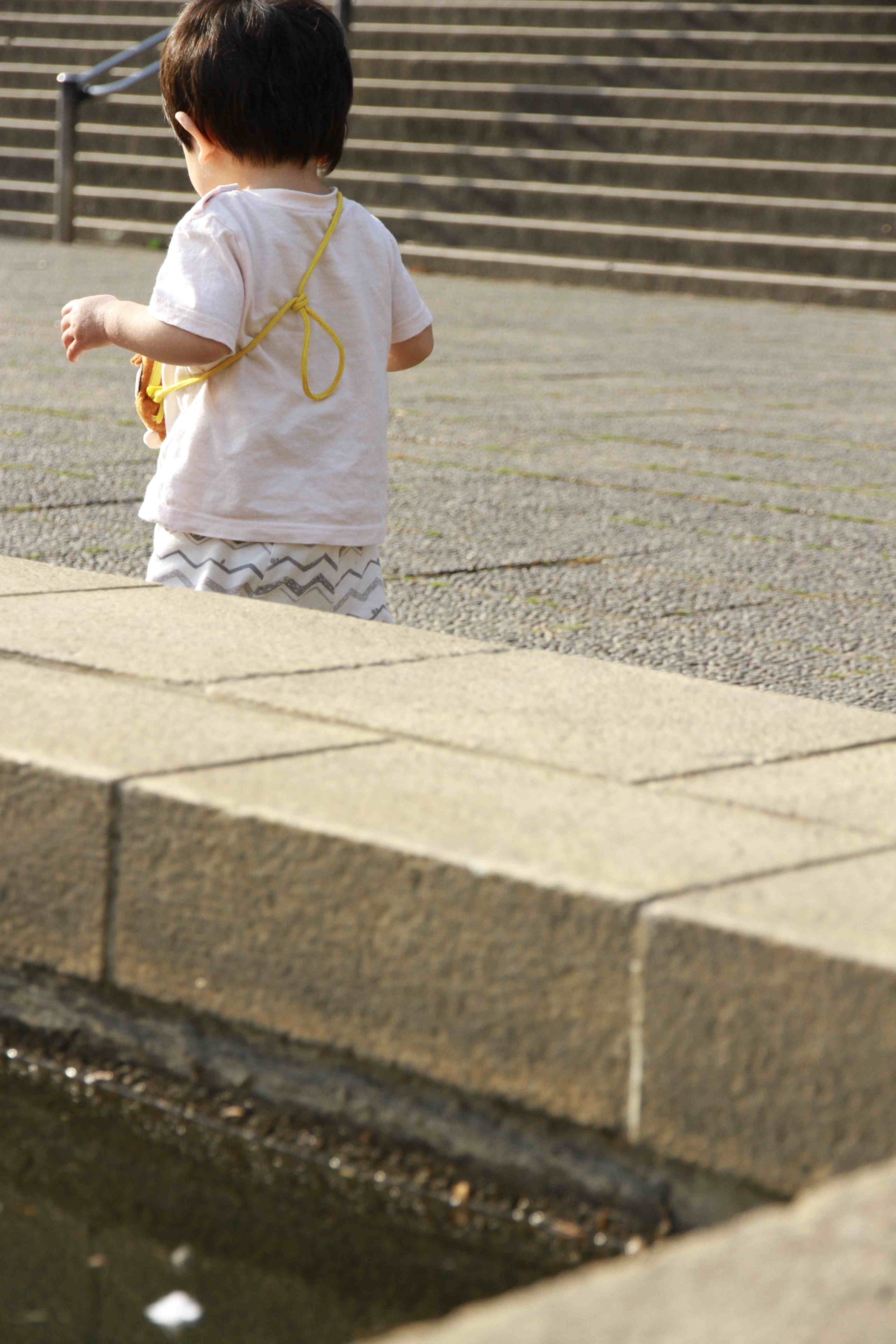 (最初は噴水を怖がって叫びながら母によじのぼっていたが、、、)
