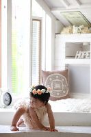元気いっぱいな赤ちゃん前と後ろを行ったり来たり白っぽいインテリアに前後差が出たとき位置によってこんな