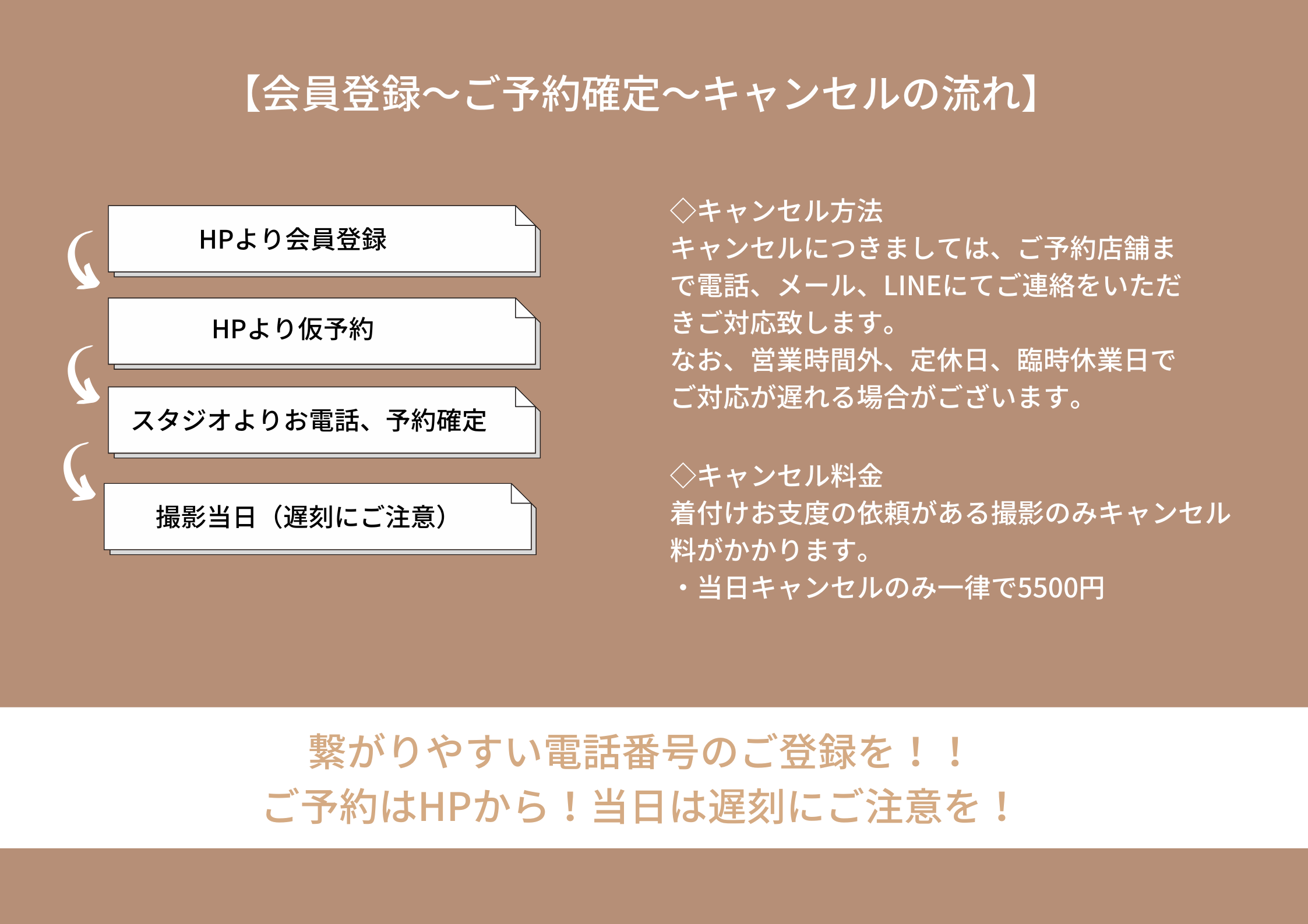 もっと詳しく予約の流れや撮影の流れを知りたい方はこちら【ご予約と撮影の流れ】