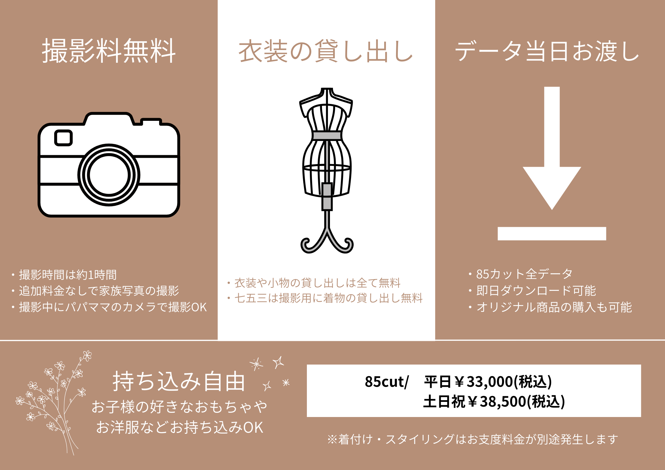 初めて写真スタジオに行くパパさんママさんの心配はなんと言っても