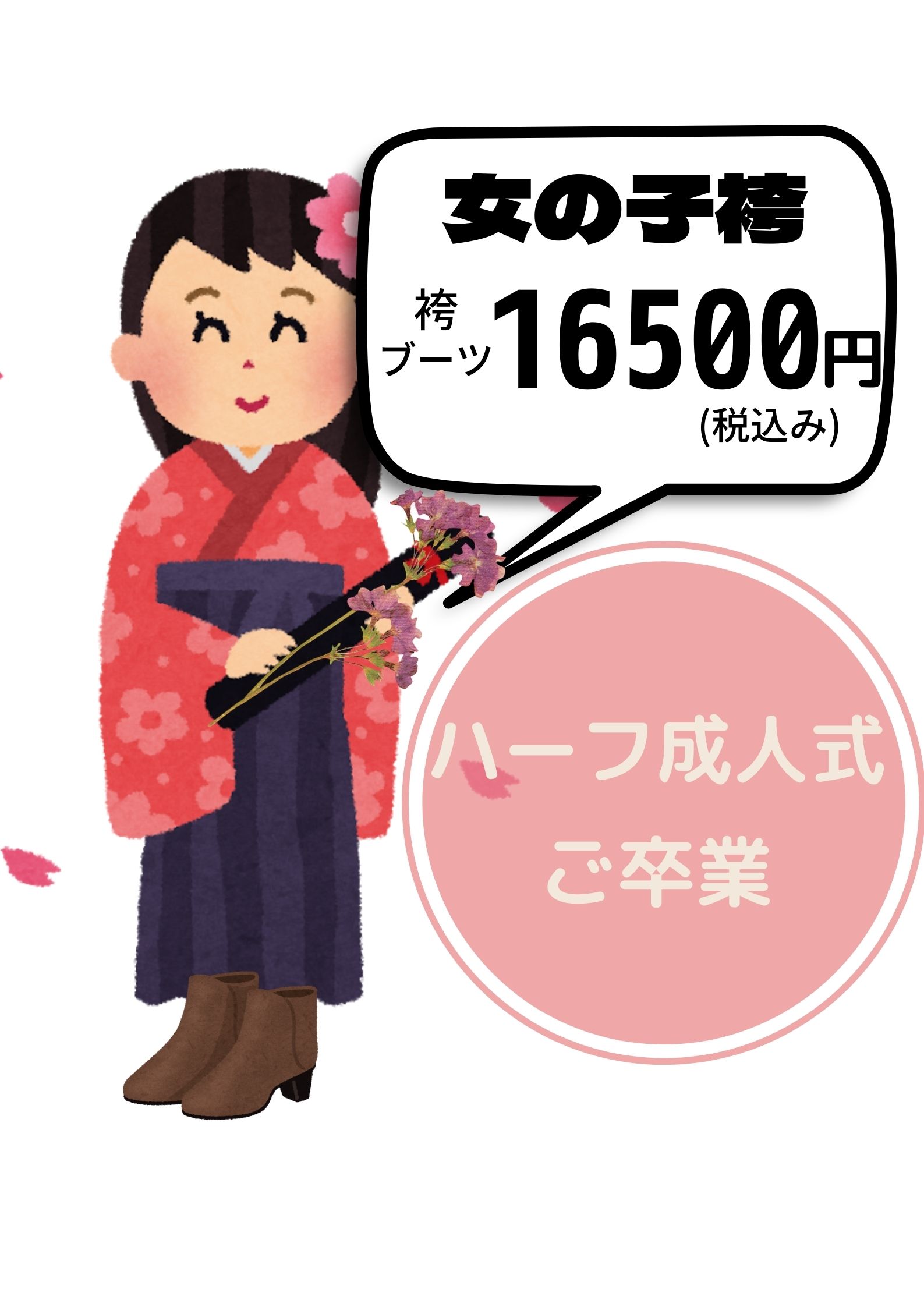 ★ハーフ成人式・卒業袴お支度ご依頼料金表