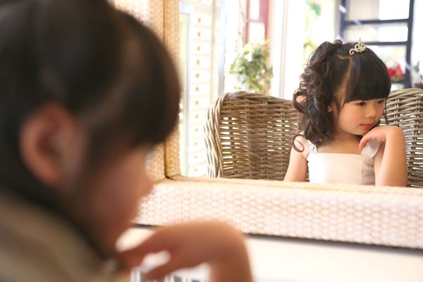 この手の仕草ありきであれば、鏡に映る姿に目線を送り自分の姿を眺めているような姿の方がマッチしていたのだと思います。