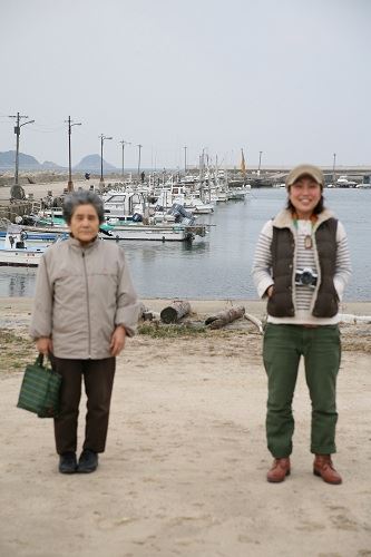 じいちゃんの船が泊まってる近くで、ばあちゃんと並んで写真を撮った。