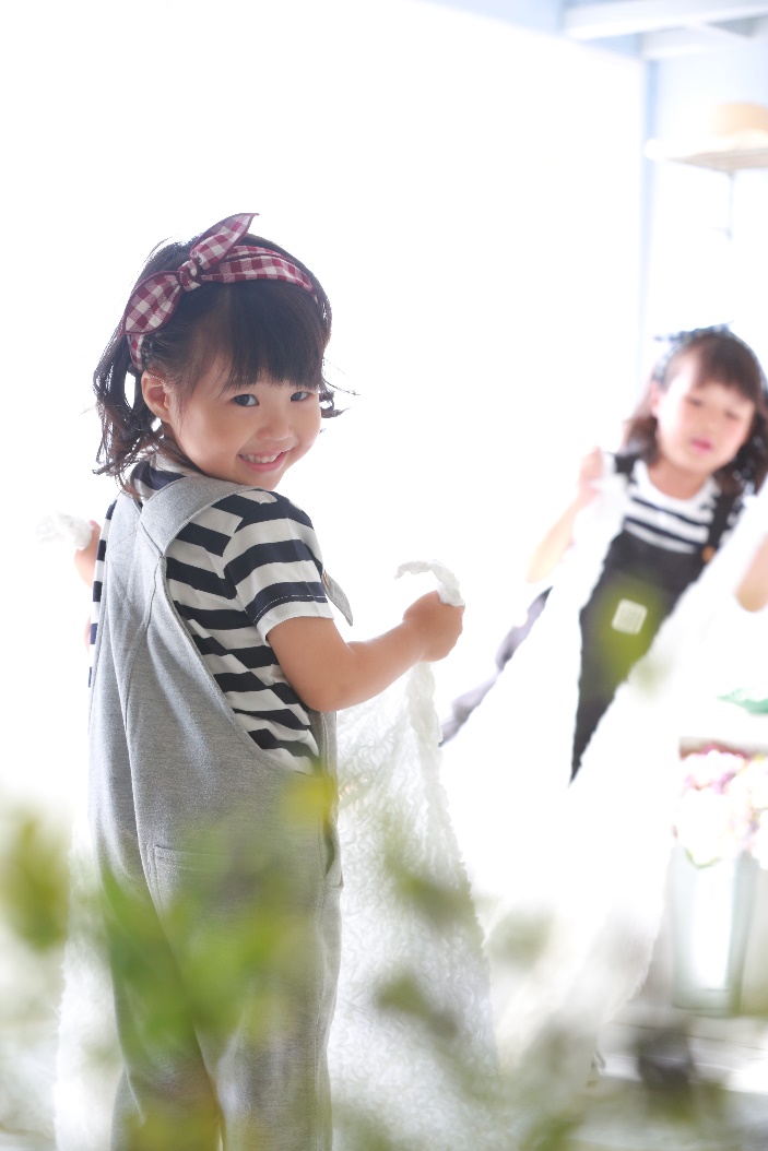 この時撮影してくださったのは五明さんは多く声はかけずに真っ白なシーツを娘達に手渡し自由に遊ばせてくれていました。