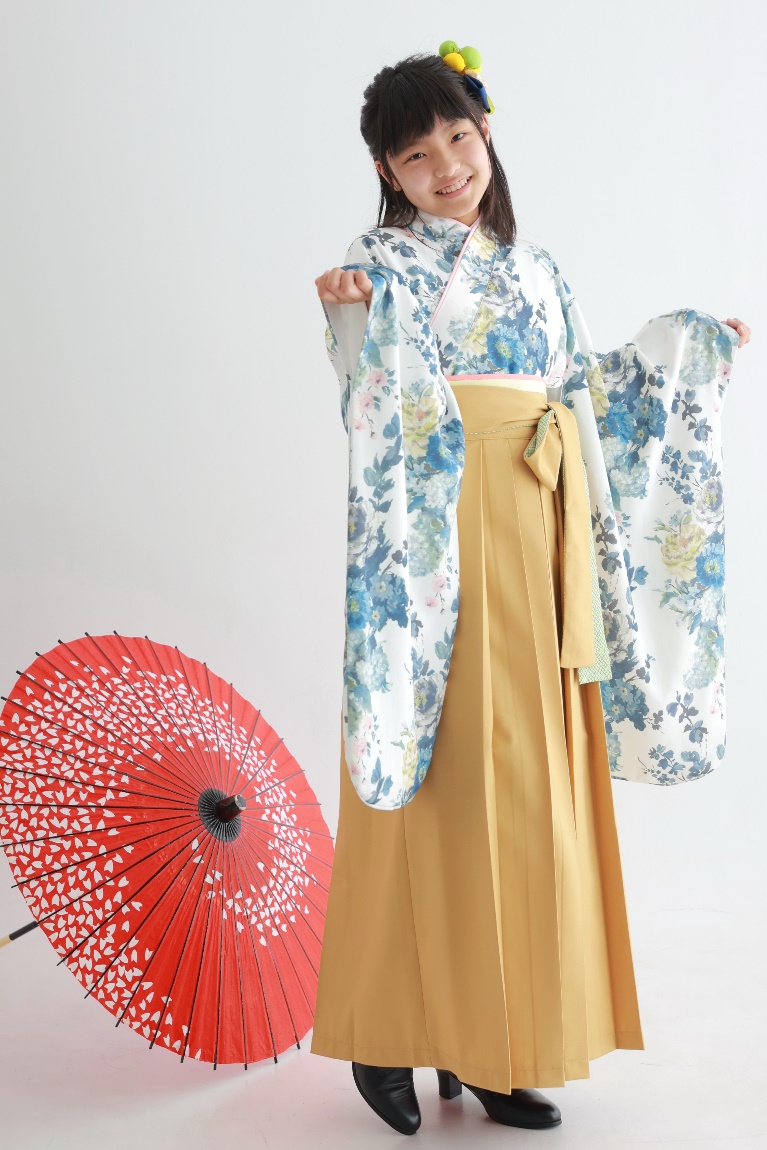 くすみカラーのお花柄に辛子色の袴。