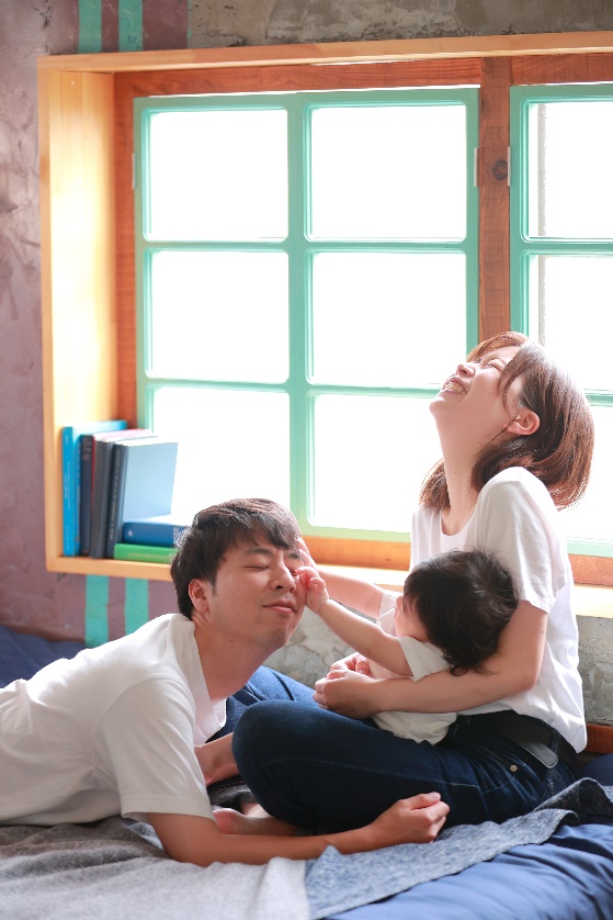 撮られる事が苦手だった旦那さんがパパになり嬉しそうに娘ちゃんを見つめる優しい笑顔