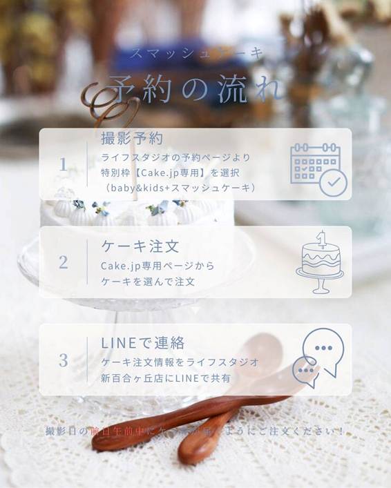 ・ケーキをご注文後は、必ず撮影店舗までLINEにて、ケーキの商品名・到着予定日をお知らせください。