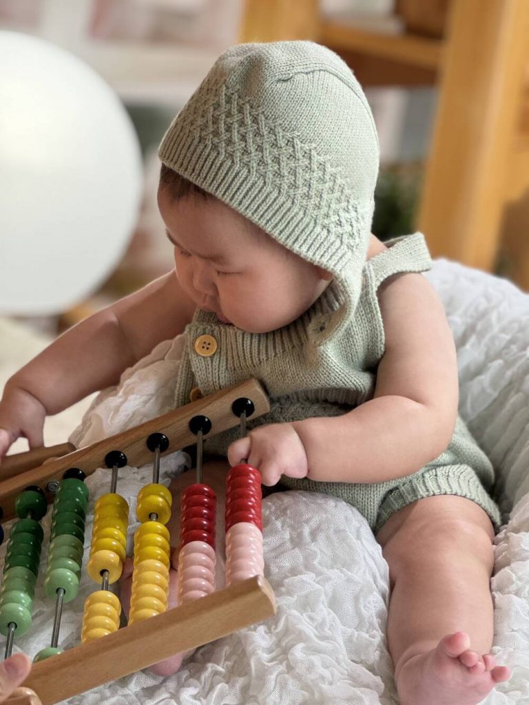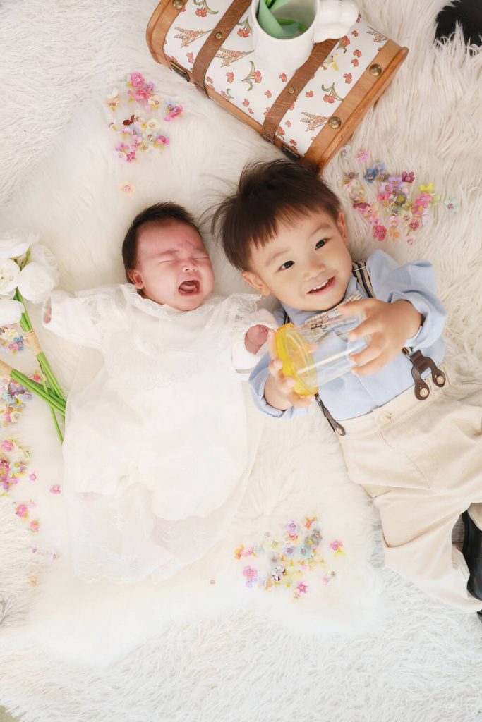 月齢もまだ低い1歳と0歳の兄妹写真が