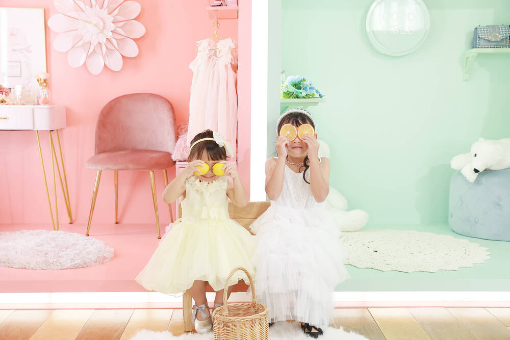 最初は緊張していたけどカメラマンのKさんやしょうちゃんがクイズを出したり寝るフリをして娘が『起きてー』と起こすやりとりで緊張も和らぎ終始笑顔で撮影することができました。写真完成までの待ち時間もずっと待合室にいなくてもブースで自由に撮影できたり動き回れることが窮屈に感じず娘もお気に入りのブースで楽しく過ごしてました。