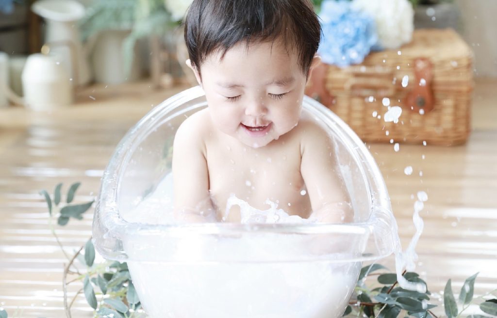 ミルクバスフォトとは、ミルクを溶かした真っ白なお湯に赤ちゃんが入って撮影するベビーフォトのこと。 ミルクのやさしい白さが、赤ちゃんのぷにぷにとしたお肌の透明感を引き立て、まるで海外の絵本のような「アートな1枚」が残せると、ハーフバースデーや1歳記念に大人気なんです。