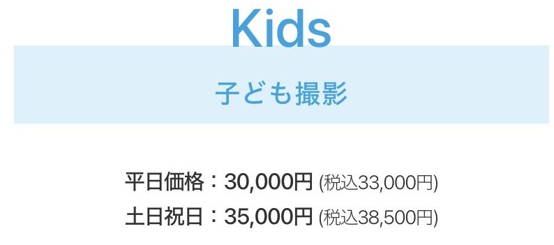 子ども撮影の料金は、曜日によって異なります。