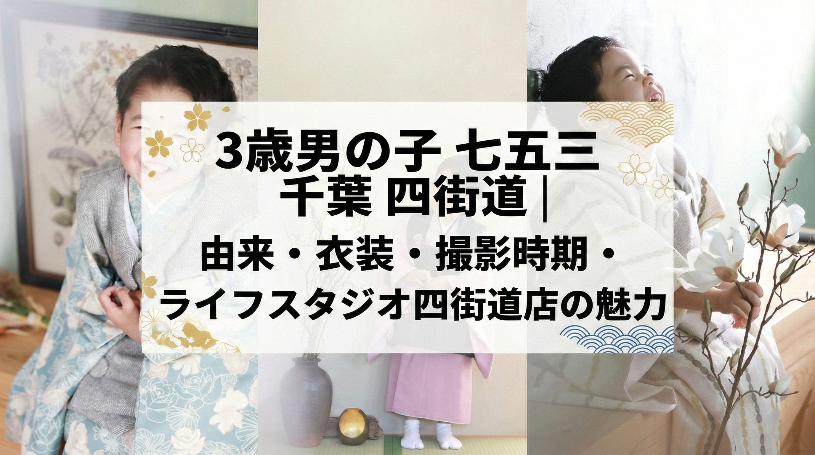 3歳男の子 七五三 千葉 四街道 を計画中の方へ。本記事では、七五三の由来や衣装選び、撮影時期、ライフスタジオ四街道店の魅力と料金プランについて詳しくご紹介します。