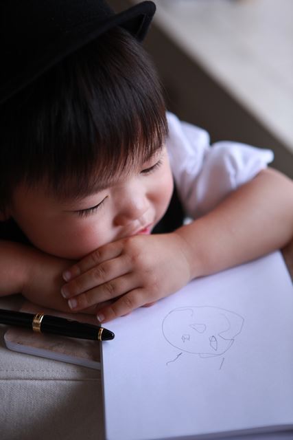 ちょっと、おしゃれなおぼっちゃんがお絵かきして満足してるような、