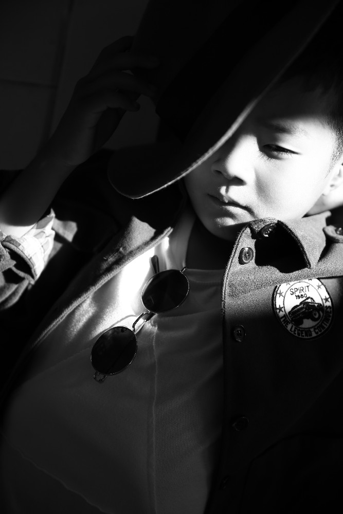 前述の通り、それなりに愛嬌のある少年だったと聞く彼を、極めて客観的に観察した時に、その撮影の前後の流れはともかくとして、この瞬間の光、小物、イメージになぞらえて、「ハードボイルド」に持って行った。