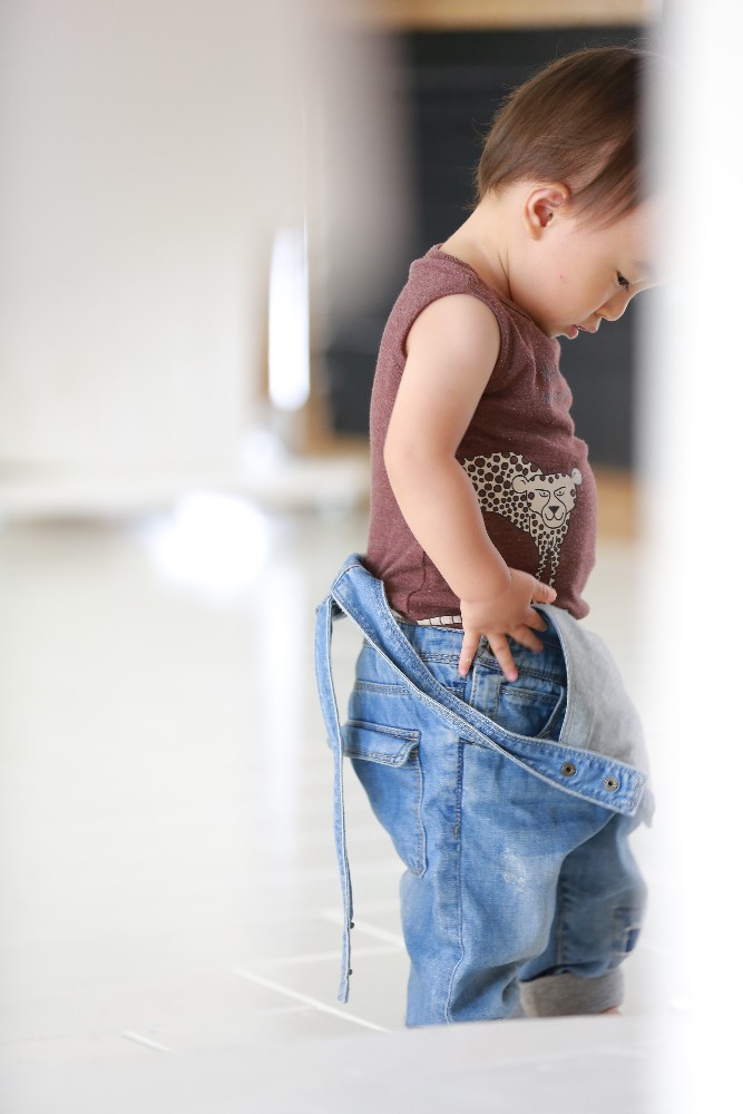 自由に動き回る赤ちゃんとこどものちょうど中間ぐらいにいる男の子。