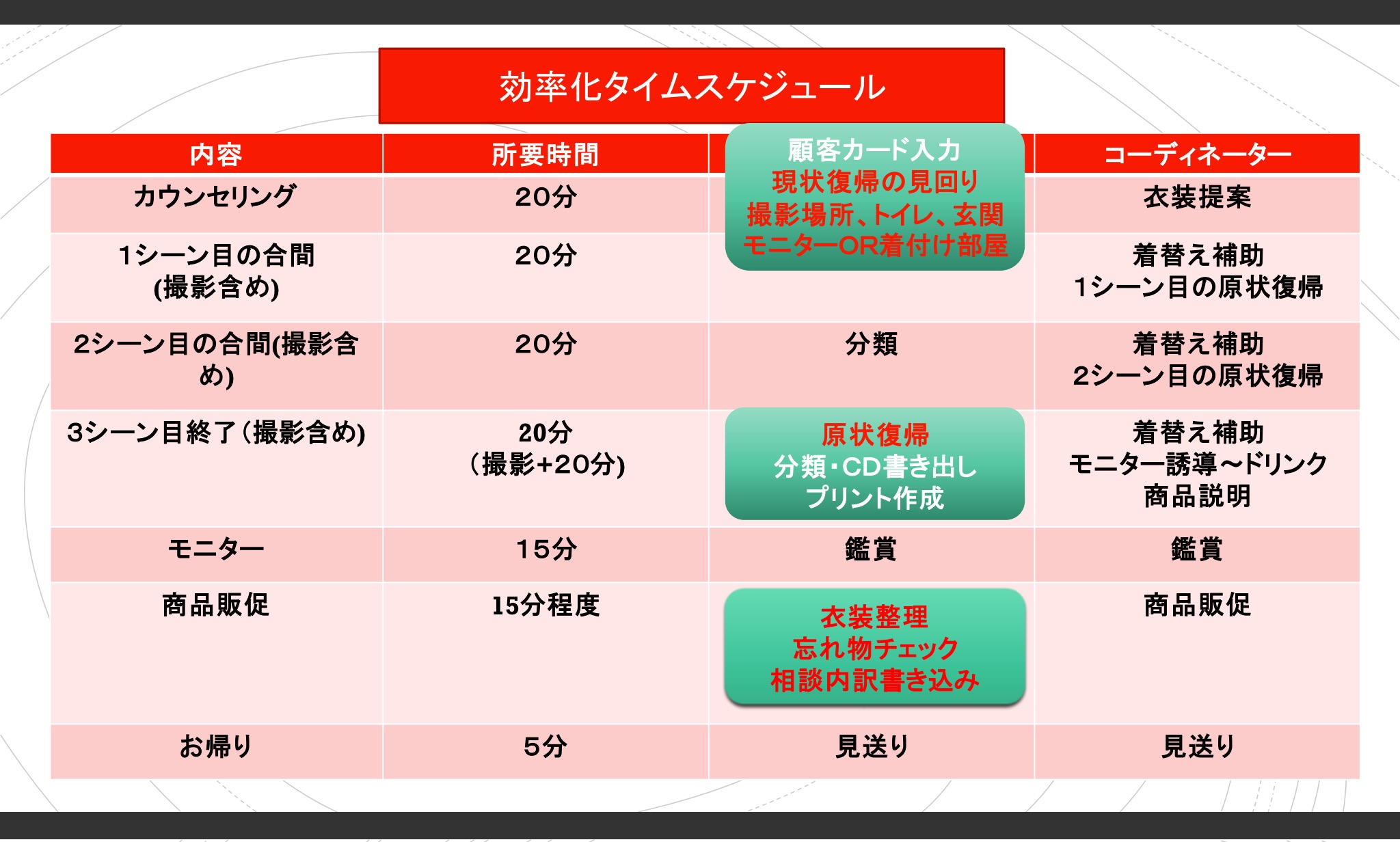 それぞれ出した案が、カメラマンが変えるべき点とコーディネーターが変えるべき点に綺麗に分かれていたため、