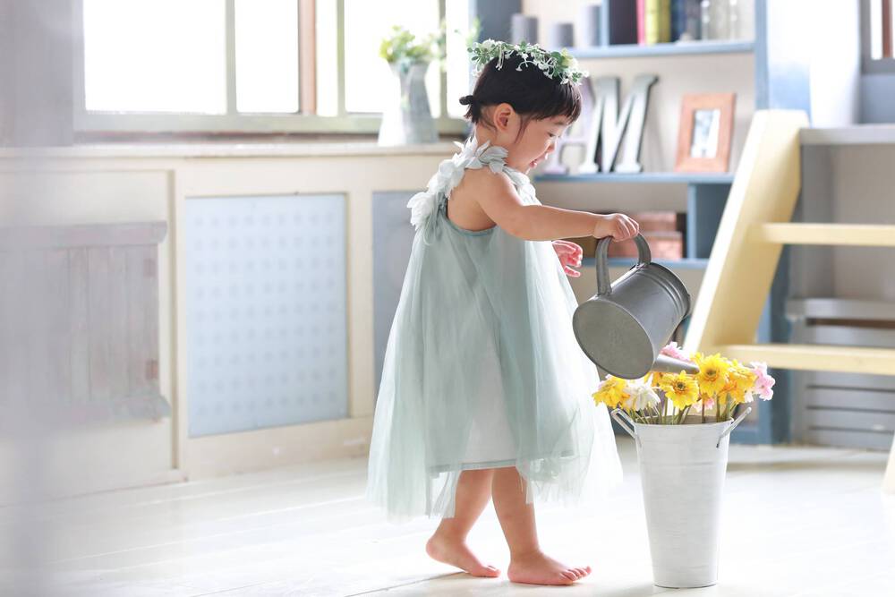本当は手に持ってるジョウロでパパとママにお茶を入れてあげたいんです。