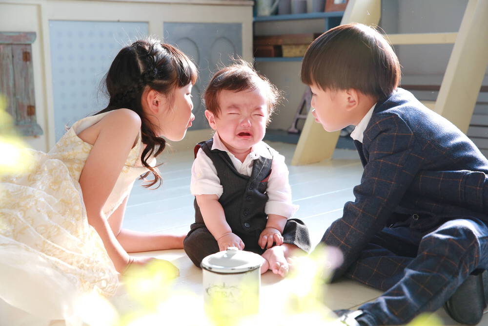 なんとか泣き止ませようと頑張るお姉ちゃん、お兄ちゃんの姿でした。