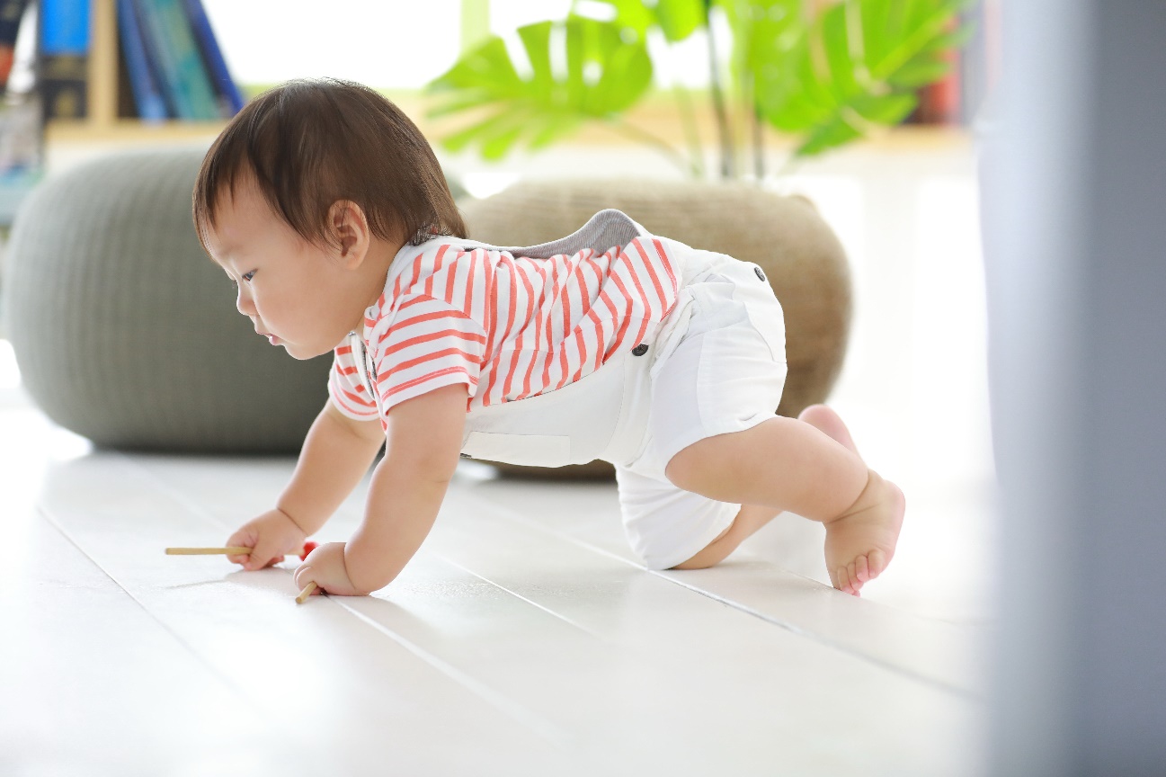 ↑1歳の弟くんは転んでも決して泣かない。立ち上がることもなく、そのままリラックスしはじめます。